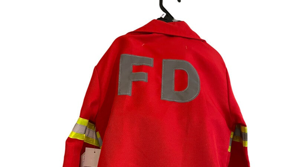 Super gave brandweerpak. Goede kwaliteit. Jas gaat met rits dicht en klitetnband