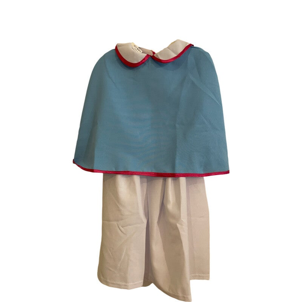 Een zusters jurk, blauwe cape kun je ook eraf halen is met klittenband bevestigd