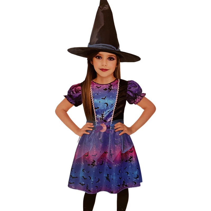 Een mooie heksen jurkje voor Halloween met punthoed