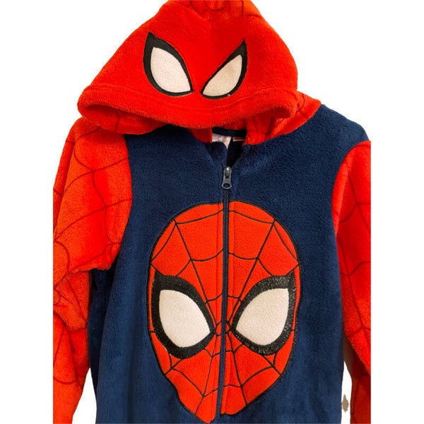 Superzahcte onsie van Spiderman, je kunt het als verkleedkleding gebruiken maar ook als heerlijke pyama/huispak