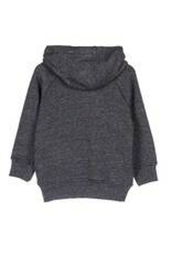 Donkergrijs gemêleerde sweater met vaste capuchon.