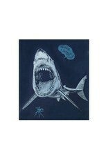Donkerblauwe longsleeve met hand geprinte opdruk op de voorkant.