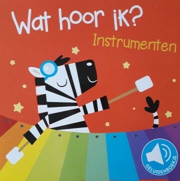Leuk geluidenboekje "Wat hoor ik? Instrumenten". Harde kaft met 12 kartonnen bladzijden.