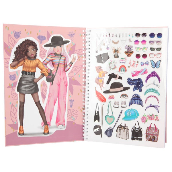 Dit is echt een super set: een TOPModel kleurboek met 76 kleurplaten, 2 stickervellen, 4 gelpennen (goud, zilver, roze, paars), 10 kleurpotloden en een gum. Yeah